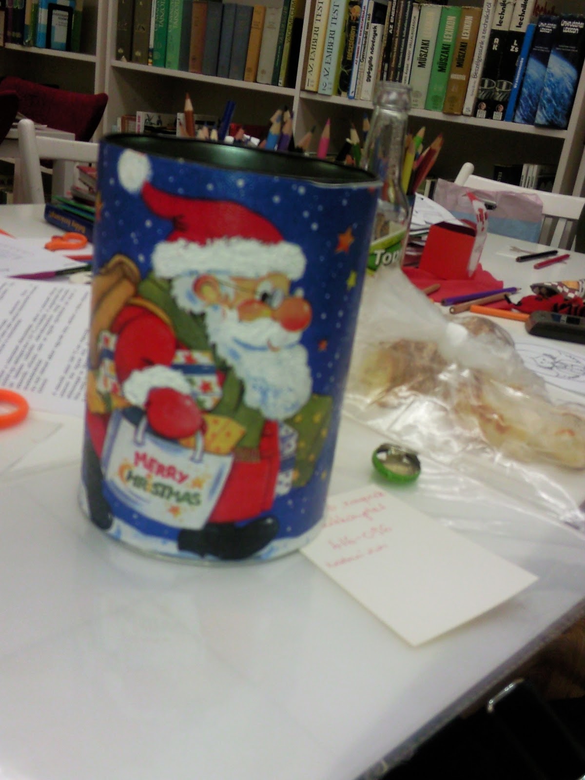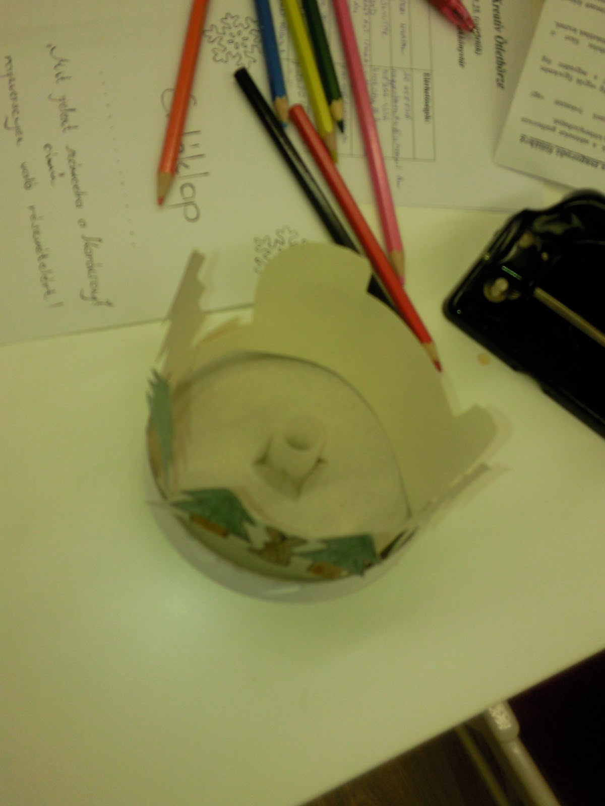 Szerintem iskolában, játszóházban is elkészíthető ez az ötlet. Tejes dobozt használjunk (amit jó alaposan kiöblítettünk) és ezt kedvünk szerint díszítsük. Én papírt és dekorgumit használtam, egy téli kép született így, de filccel, szalvétattechnikával, csomagoló papírral stb. is díszítheted. A lényeg, hogy üzeneteket kell bele gyűjteni, amit csak karácsonykor szabad elolvasni. Ezt készíthetitek Valentin-napra vagy Anyák-napjára is.