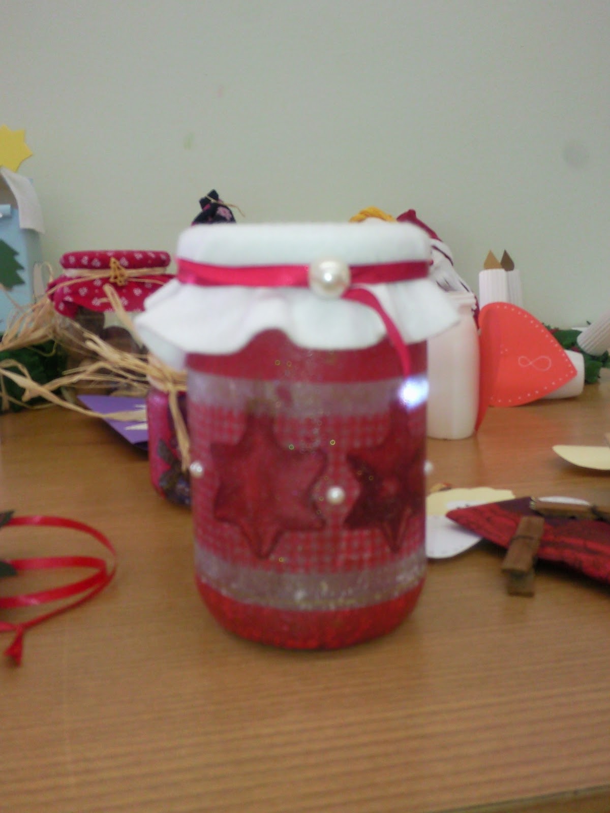 Egyszerű, gyorsan elkészíthető és még jól is mutat! A megtisztított befőttes üveget szalvétatechnikával díszítettem (glitteressel), majd a tetejét filccel és szatén szallaggal felöltöztettem. Végül félbevágott gyöngyöket tettem rá és már kész is volt a szép ajándék. Tehetsz bele saját készítésű süteményt vagy használhatják mécses lámpának is, így egy mutatós, olcsó és praktikus ajándékot adhatsz ajándékba.