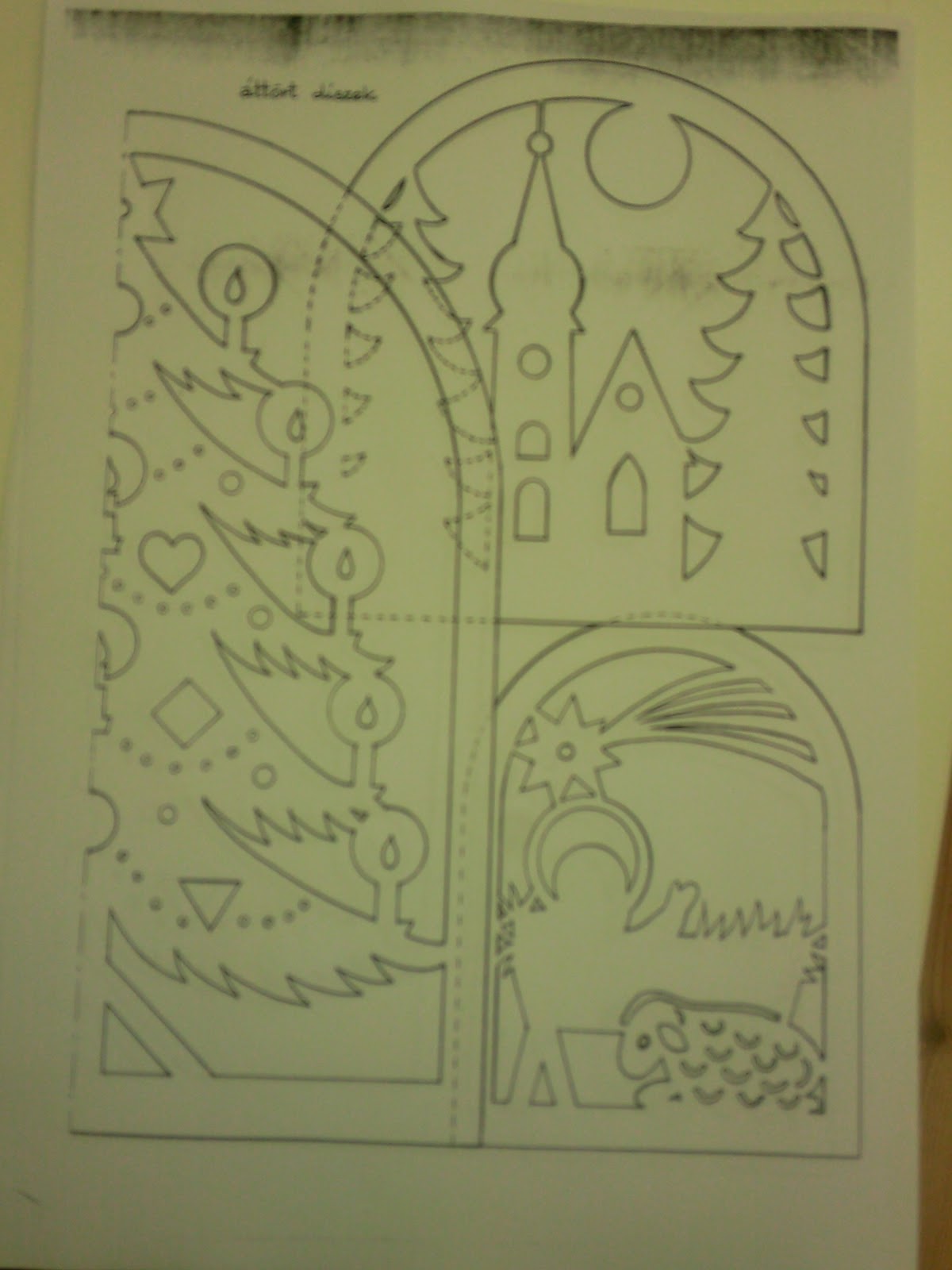 Gabi és Erika sablon alapján készítette ezt a fát, ami szép alblakdísz is lehet. Kicsikkel ezt nem ajánlom, mert a belső részeket nehéz kivágni.
