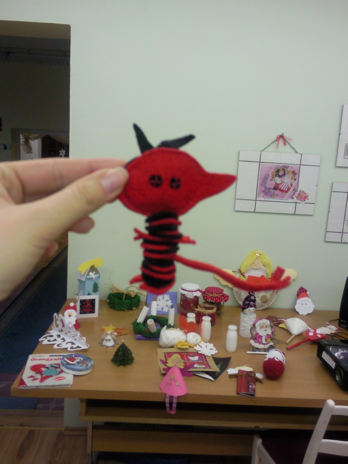 Nagy sikere van minden évben ennek a kis asztaldísznek. Általában, spórolósan fehér műszakikartonból vágjuk ki a két manót. Bár a sablont nem raktam fel, ez alapján megtudjátok rajzolni vagy megnézitek, hogy a könyvtárban bennt van-e a Boldog karácsonyt! és duplán kivágjátok. Ha marad a spórolós verzió, akkor a gyerekek kiszínezik, kifestik, majd összeragasztjátok.