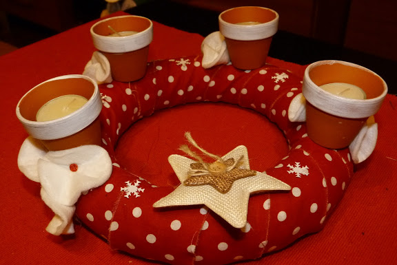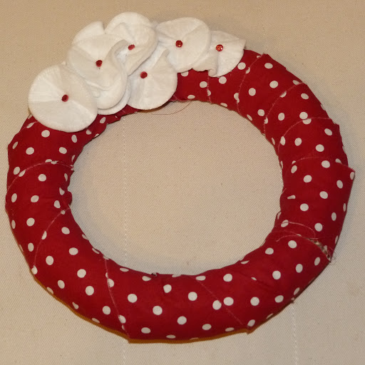 A koszorúkhoz szalmakoszorú alapot használtam, mert egyrészt nagyon olcsó (190 Ft/db), másrészt itt nem is volt más per pillanat…. Mivel piros pöttyös mániás vagyok, így készült két igazán egyedi karácsonyi koszorú, ami valószínűleg csak nekem tetszik majd, de legalább nekem NAGYON!!! A díszítő virágok egyébként vattakorongok, amit gombostűvel rögzítettem.