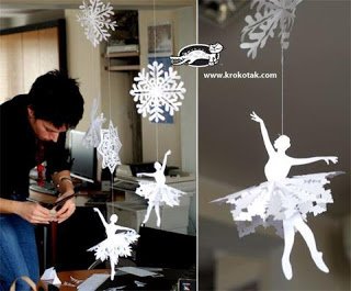 Van egy hópehely minta, amit én minden évben legalább 10 példányban megcsinálok, mert egyszerű, mutatós és egyszerre 6 db-ot is el lehet készíteni. Elkészítés: az A/4-es papírt hosszában ketté hajtjuk, majd három részre hajtjuk. A sablont körberajzoljuk és aztán így egyben kivágjuk. Én szoktam még egy kis csillámos ragasztóval is díszíteni, így még szebb. Nem csak az ablakba teszem, hanem ajándék kísérőnek is kitűnő. Készült még néhány muffinpapírból is és kis jegyzetpapírból is.