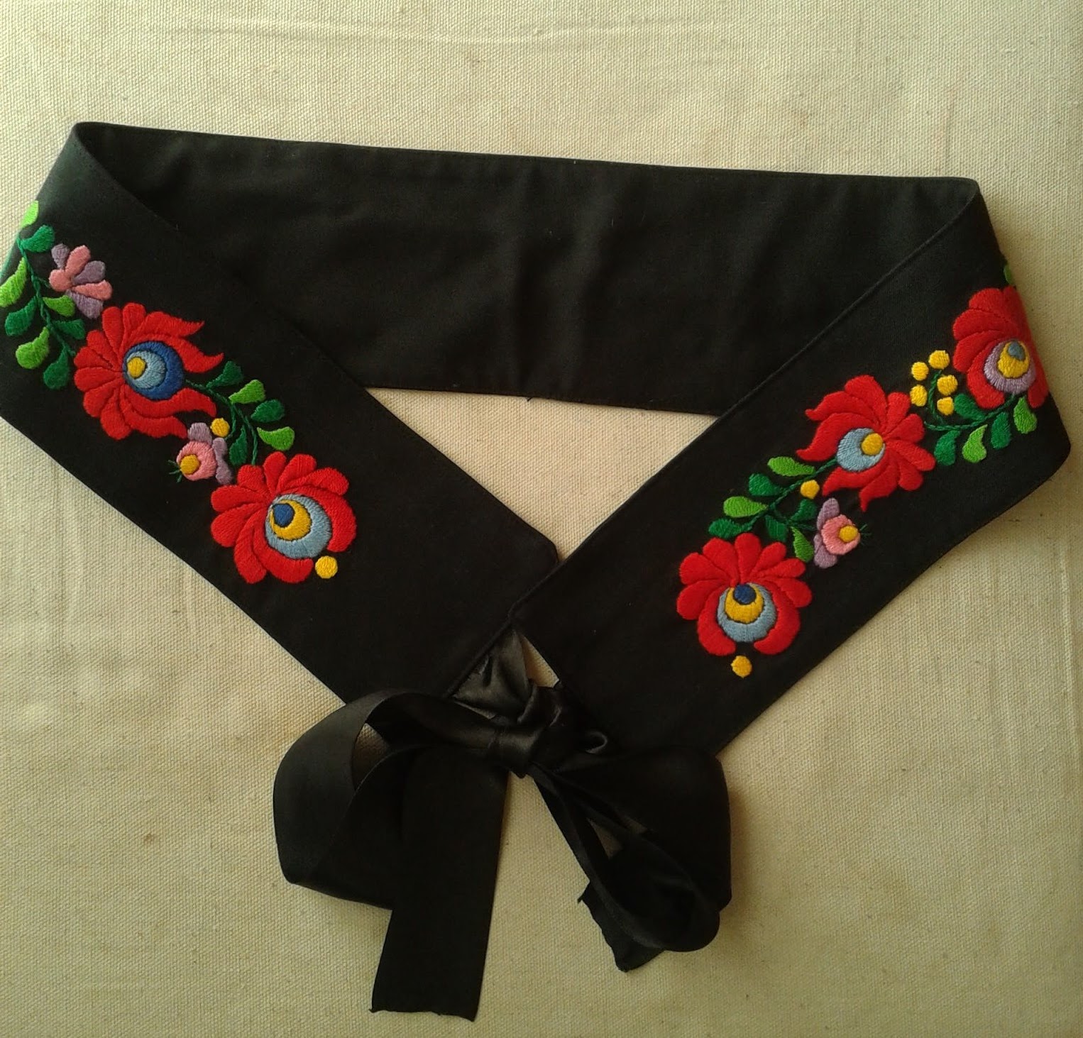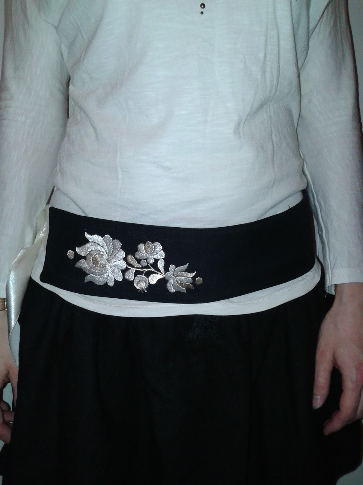 Mivel nem régen volt a névnapom, ezért megleptem magam egy igazán matyós ajándékkal. A lányom csoportjában van egy kislány, akinek az anyukája nagyon szépen hímez, ezért megkértem, hogy hímezze ki nekem az övet, ami hónapok óta készen volt már a fejemben. Marika azonban szebbet készített, mint reméltem és persze hálám nem csupán neki, hanem a varrónőnek is kijár, aki összerakta. Kettő készült, a másikat a barátnőm kapta. Szerintem gyönyörű lett! Több verzióban is hordható, amit meg is akartam mutatni, de kicsit előnytelenek lettek a képek, hála harmadik “terhességemnek”, sütinek.