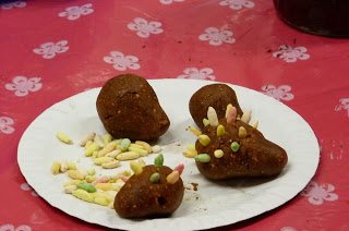 Igen, voltunk olyan bátrak, hogy a szokásos Kabócás péntekünkön azt talátuk ki, hogy süti süniket készítünk a gyerekekkel. Az ötlet Lukács Gabriella barátnémtől származott, de én voltam, aki a legtöbbet megette belőle:)