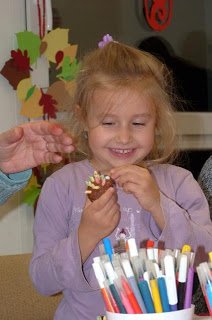 Az egész nagyon egyszerű: összgyúrtuk a kókuszgolyóhoz használt kekszes tésztát, majd kiosztottuk az adagokat. Minden gyermek először formázott egy nagy golyót, aminek az orr részét megnyújtották és már lehetett is díszíteni. Mi Zizit és drazsét használtunk (aminek a nagy részét szintén én fogyasztottam el), de olvasztott csokival és csokidarával is nagyon jól mutat. A szeméhez a pöttyöket egyszerű kakaó+víz sűrűre keverésével oldottuk meg. Az egyik kisfiú, Bálint ötlete volt, hogy a golyóba rakott egy drazsét, így még finomabb volt.